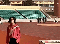 허들 준비운동하는 누나