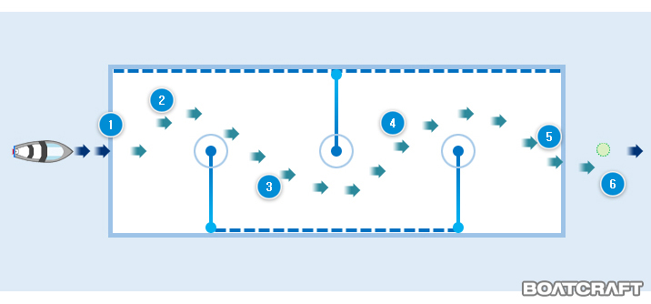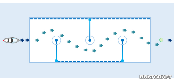 사행은 첫번째 부이 약 15m 전방에서 시작한다.